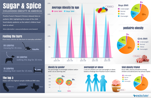 - 35 percent of children age 3-18 were overweight or obese, according to Practice Fusion’s Research Division.