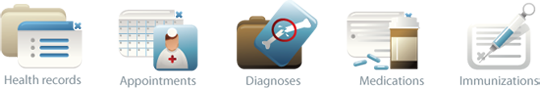 View diagnoses, immunizations and prescriptions as reported by your practice